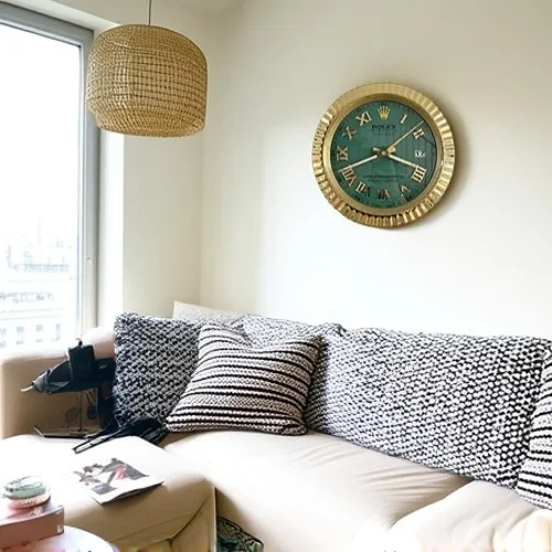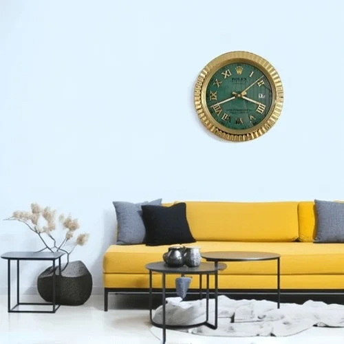 Transform your interior with this 34 cm Date-Just Wall Clock in Roman Dial Gold & Green Style — a luxury décor statement inspired by the timeless aesthetics of high-end timepieces. The elegant gold bezel frames a rich emerald-green dial with crisp Roman numerals, creating a striking centerpiece that instantly elevates any room.