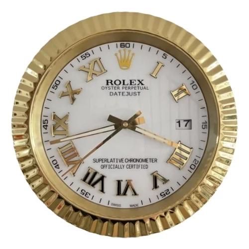 Be the first to review “Date-Just Wall Clock – Roman Dial Gold & White Style”