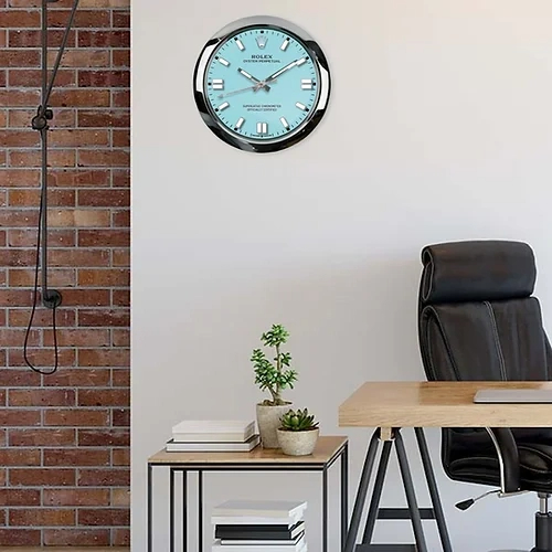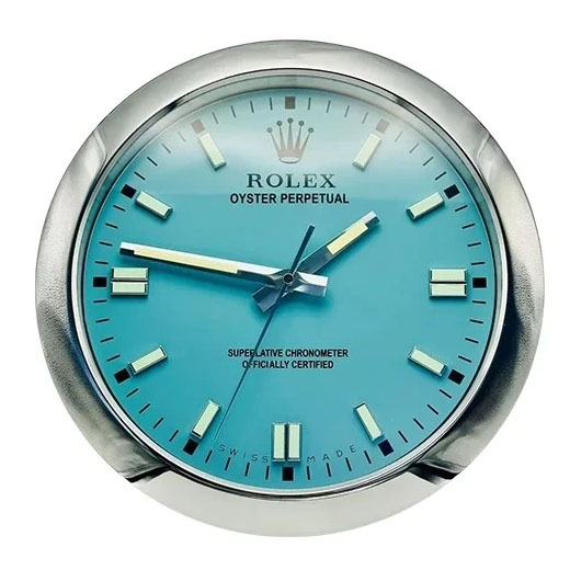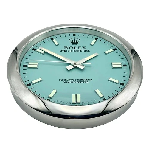 Whether displayed as a subtle statement piece in a modern living room, used to brighten a minimalist interior, or chosen as a thoughtful gift for watch enthusiasts, this Oyster Perpetual Wall Clock with Tiffany-style dial offers a perfect balance of timeless design, color, and everyday elegance.