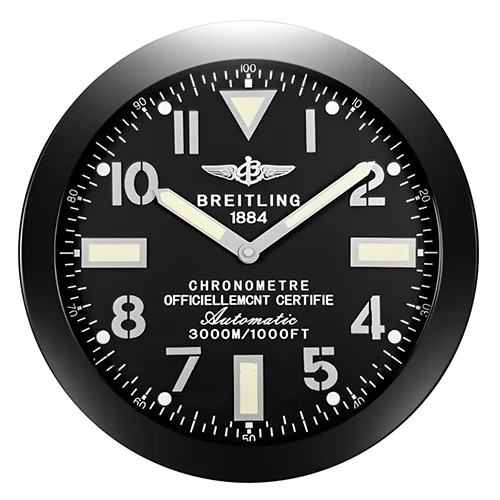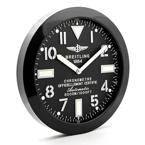 Bring aviation-grade aesthetics into your space with the Breitling Wall Clock All Black Style, a refined 34 cm timepiece inspired by the iconic instrument-panel look of Breitling watches.