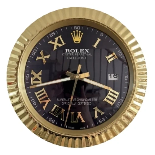 Date-Just Wall Clock – Roman Dial Gold & Black Style | 34 cm Luxury Edition