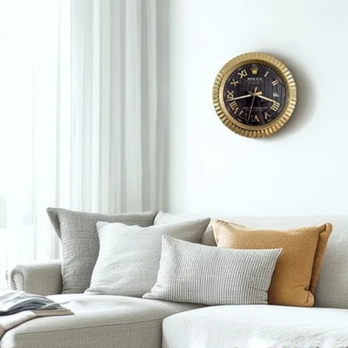 Bring a bold touch of luxury to your interior with this 34 cm Date-Just Wall Clock featuring a striking Roman Dial Gold & Black Style. Inspired by prestigious wristwatch design, this statement timepiece blends classic elegance with modern décor appeal.