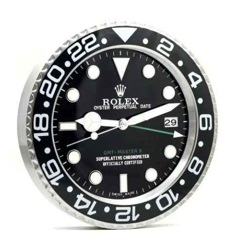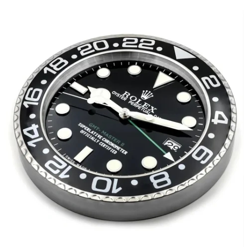 This piece is Rolex-inspired in design, drawing from the legendary GMT Master II aesthetic, but reinterpreted as a functional wall clock for everyday environments. Whether displayed in a living room, office, lounge, or collector’s space, it delivers a bold, confident, and professional atmosphere.