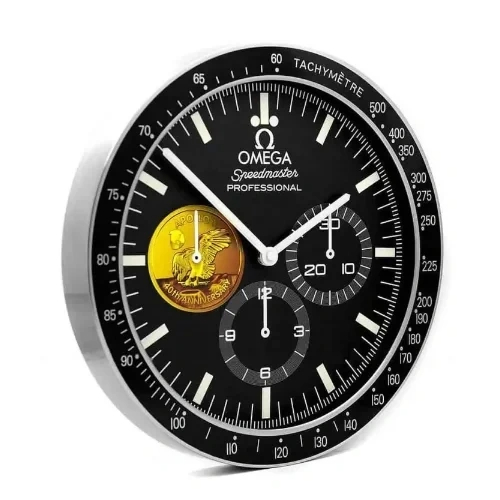 Bring timeless elegance to your space with the Omega Speedmaster Moonwatch Apollo Golden Luxury Wall Clock – 34 cm, exclusively from Xclocks. This Omega wall clock, finished in a radiant gold tone, blends precision quartz craftsmanship with modern décor appeal. Featuring silent sweep movement and luminous hands, it ensures quiet precision and clear readability day or night.