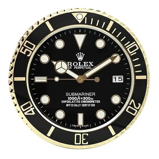 Designed for both decorative appeal and dependable daily use, this Submariner Wall Clock combines premium styling with practical functionality. The black dial remains striking under different lighting conditions, while the gold-tone accents preserve their warmth and visual richness. Easy wall mounting makes installation simple and convenient.