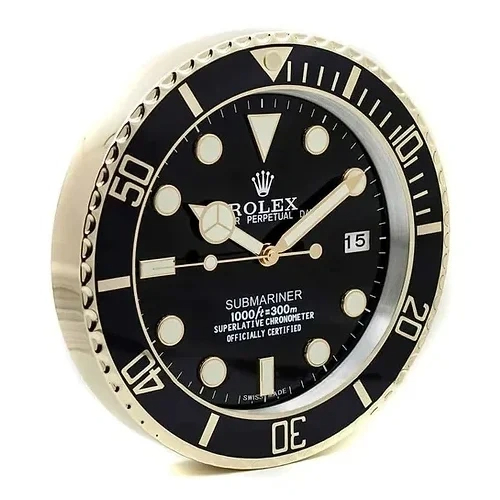 If you are looking for a Submariner Wall Clock with richer contrast, silent performance, and Rolex-inspired dive-watch character, this 34cm black and gold model is an excellent choice for sophisticated interiors.