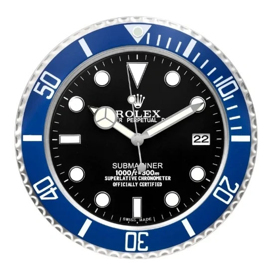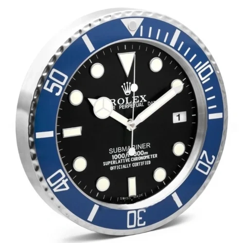 If you are looking for a Submariner Wall Clock with bold contrast, silent performance, and Rolex-inspired dive-watch character, this 34cm blue and black model is an excellent choice for sophisticated interiors.
