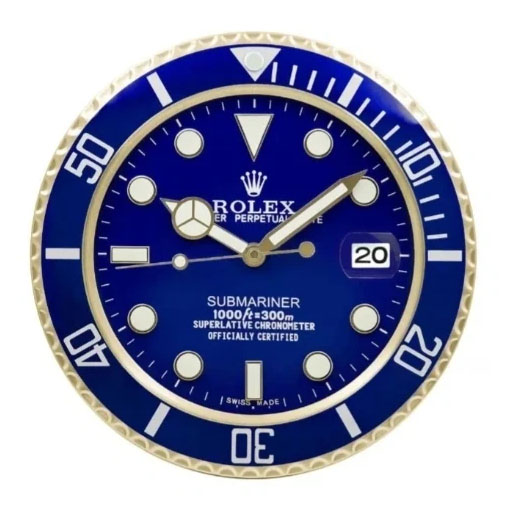 If you are looking for a Submariner Wall Clock with stronger color, silent performance, and Rolex-inspired dive-watch character, this 34cm blue model with a gold frame is an excellent choice for sophisticated interiors.