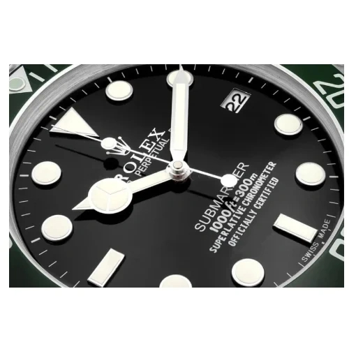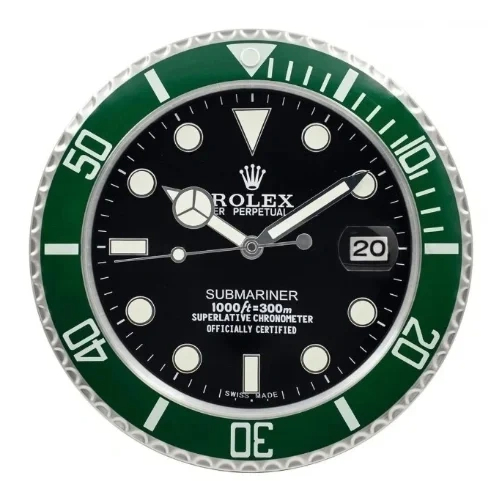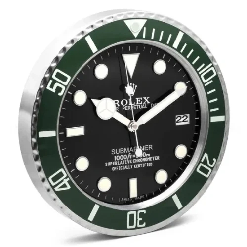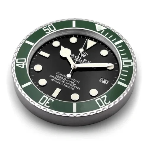 If you are looking for a Submariner Wall Clock with bold contrast, silent performance, and Rolex-inspired dive-watch character, this 34cm green and black model is an excellent choice for sophisticated interiors.